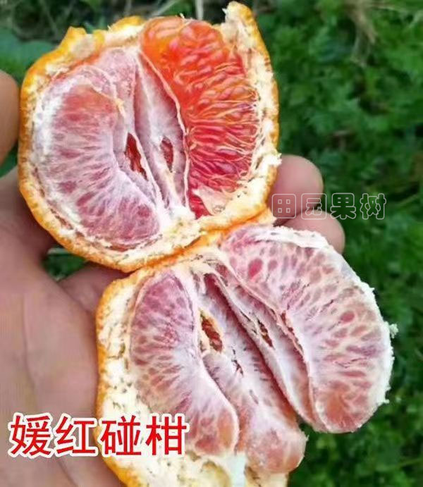 日本引進,由太田碰柑和摩洛血橙雜交育成。果實扁球形,單果重180克左右,糖度14度以上,果皮呈紅色,完熟時呈現橙紅色,果肉紫紅色。化渣性好,油胞小,果皮薄,剝皮容易,香氣濃,無籽。鮮果和果汁具有葡萄的香味和碰柑的甜味,果肉呈紫紅色,果汁色澤類似紅葡萄酒,除鮮食外,果汁中含有豐富的花青苷、多酚和β-隱黃素等保健成分,可用于制成飴紅色的飲料和制成各種其他的食材。