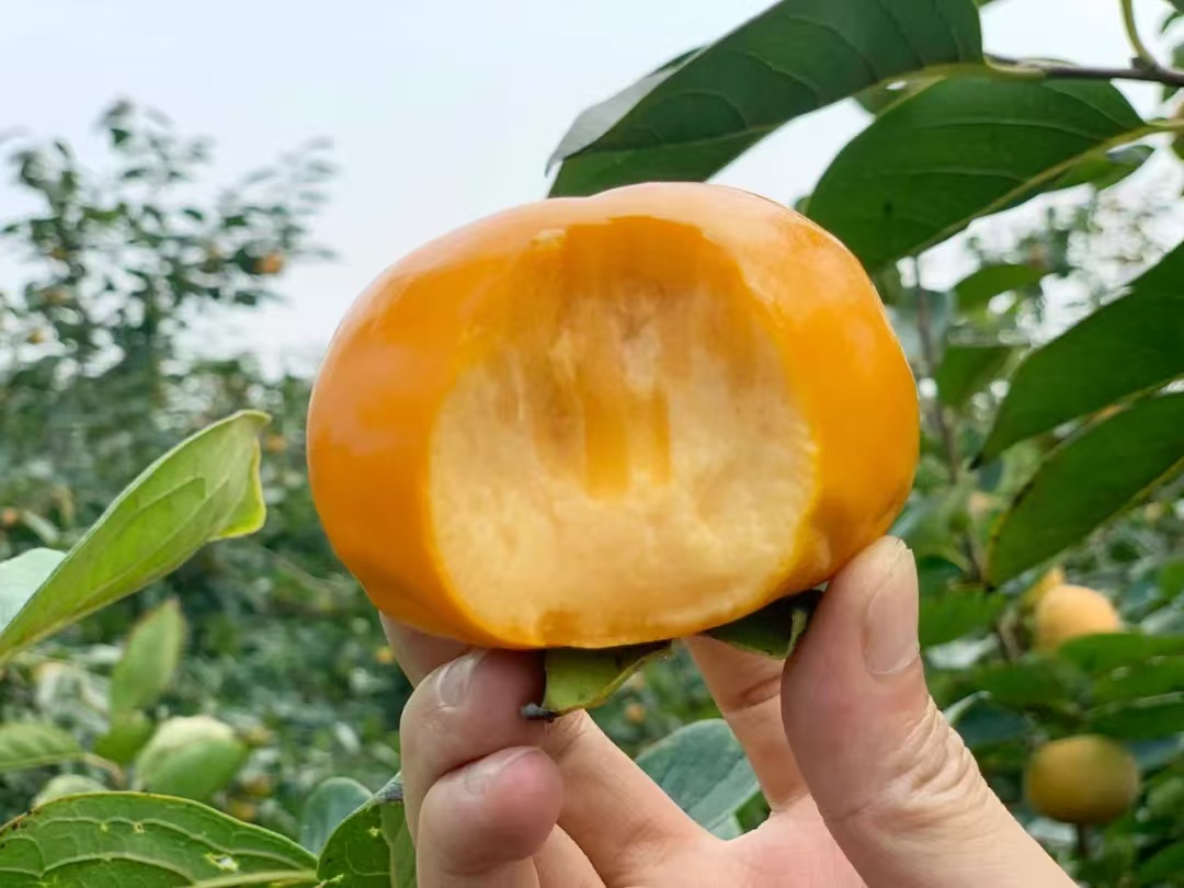 陽豐甜柿:屬于日本品種。果實(shí)呈扁圓形,果面橙紅色,果肉為橙紅色。